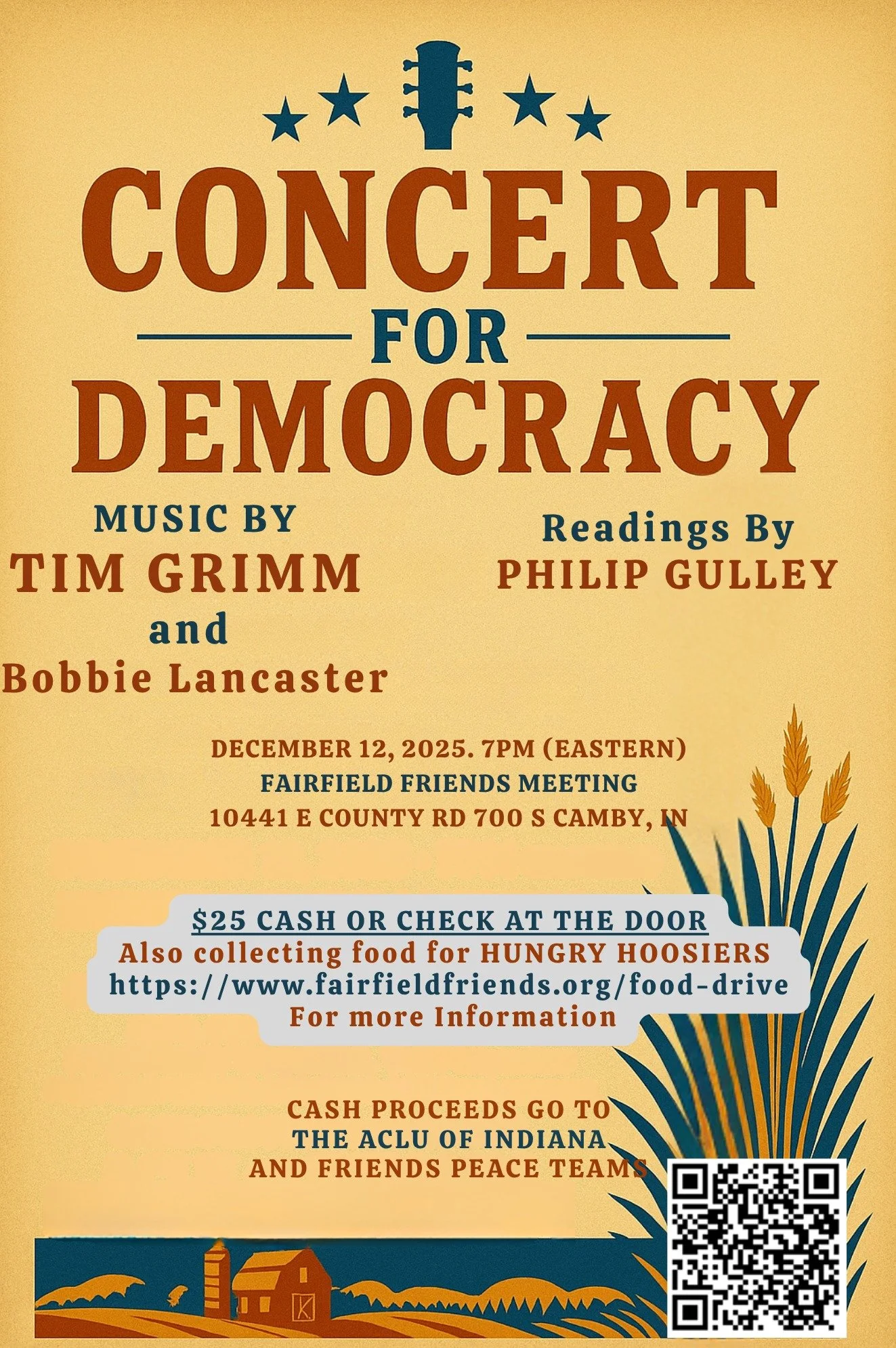 The Fairfield Outreach Committee is gathering food for hungry Hoosiers at the Concert for Democracy